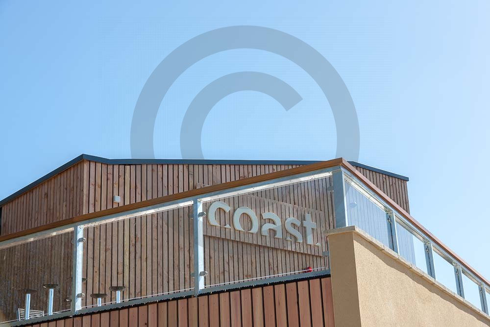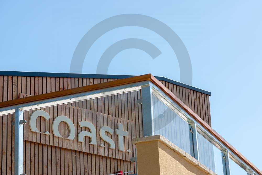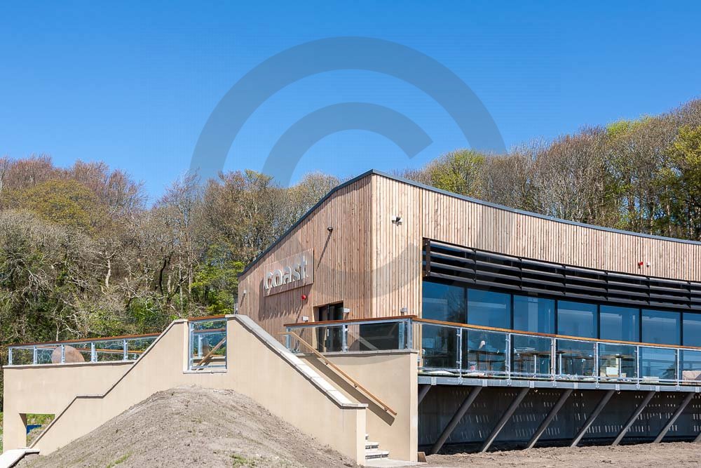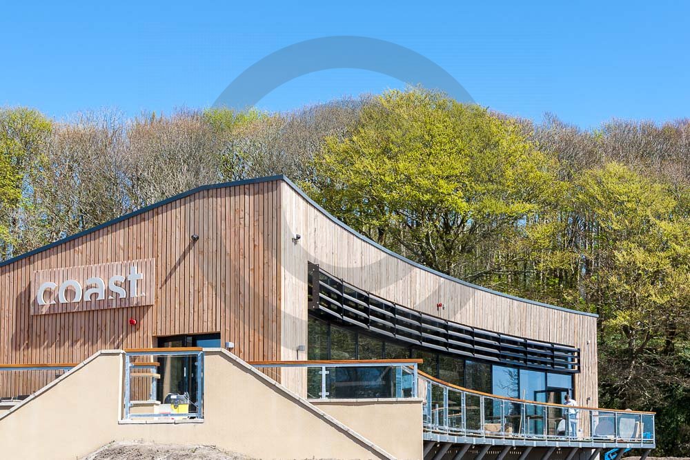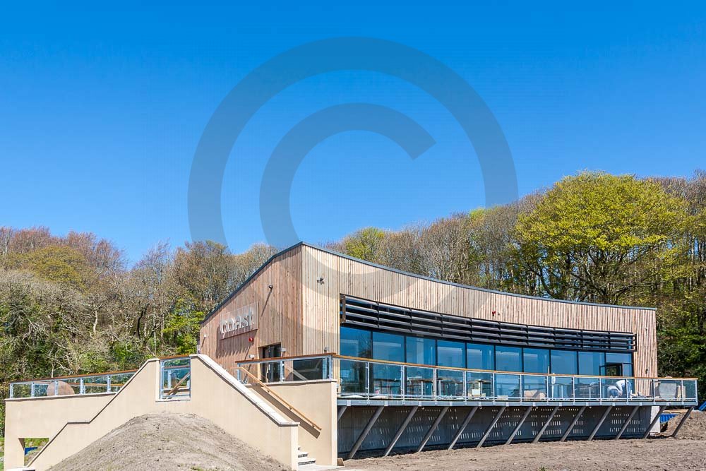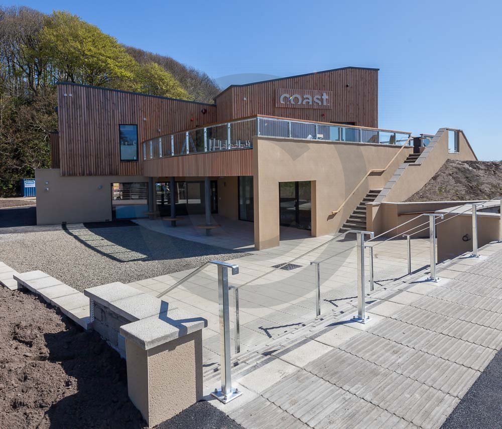The amazing Coast Restaurant near Saundersfoot in Pembrokeshire, Wales photographed just after being built. The restaurant overlooks the beach and sea at Coppit Hall.