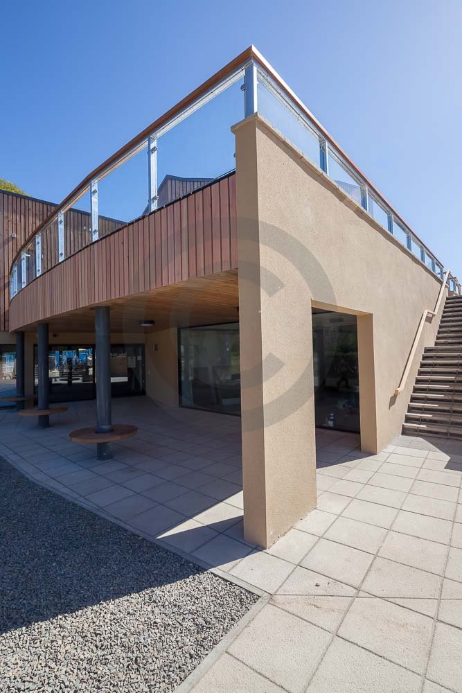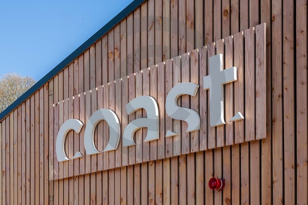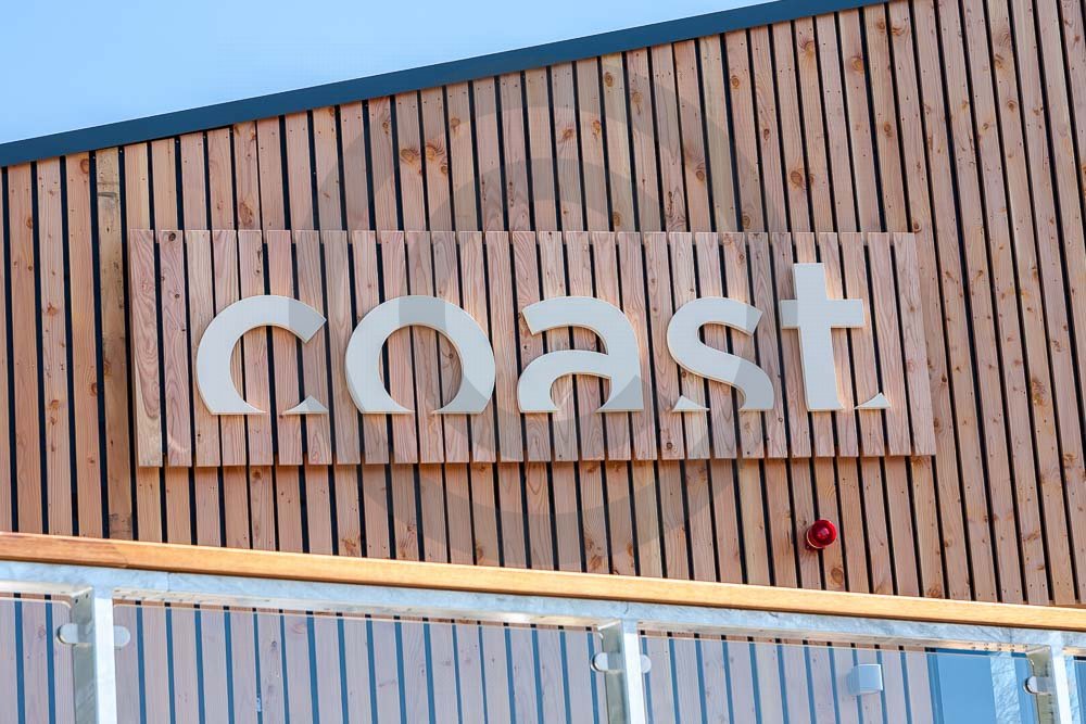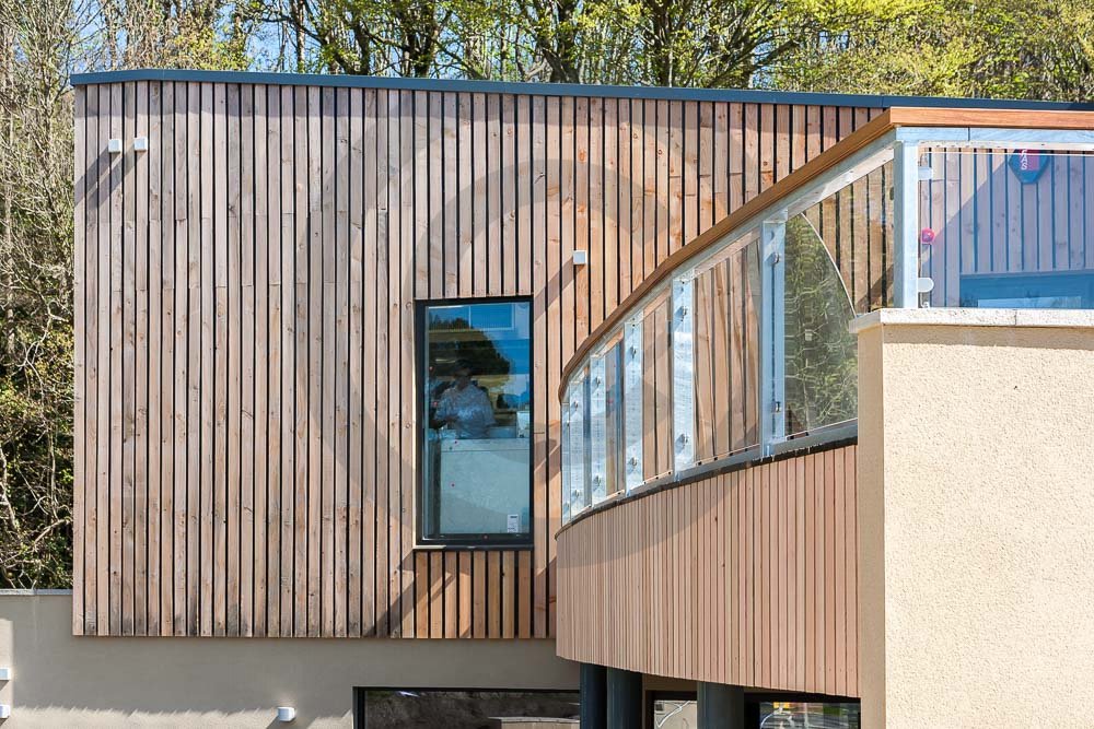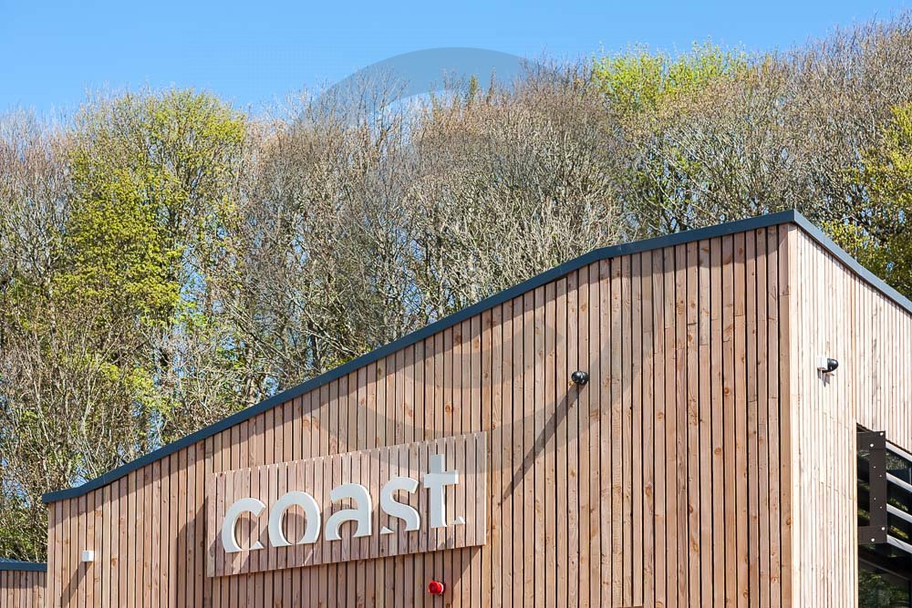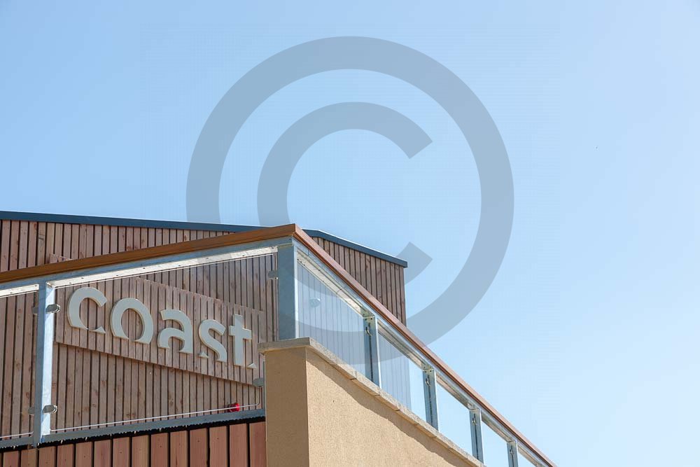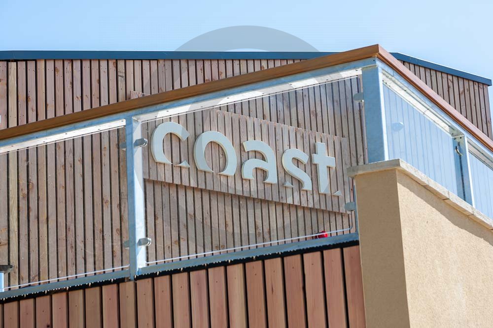 The amazing Coast Restaurant near Saundersfoot in Pembrokeshire, Wales photographed just after being built. The restaurant overlooks the beach and sea at Coppit Hall.