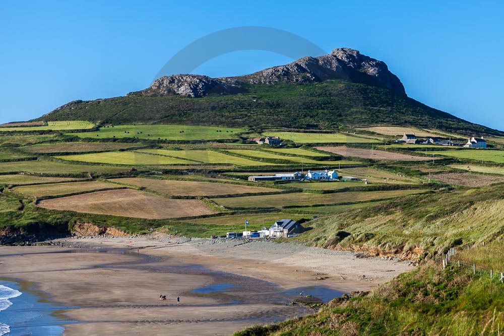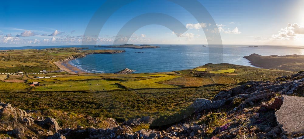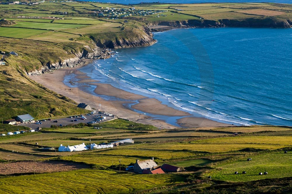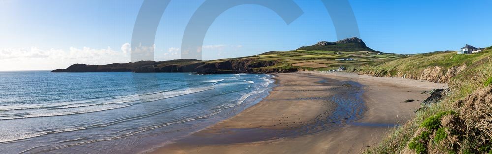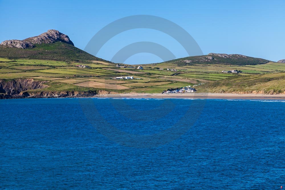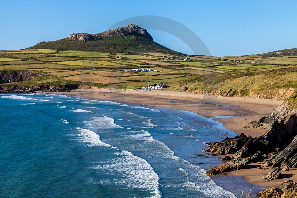 The stunning coastline around Whitesands beach with views of the sea and hills behind. Located on the St Davids penisula in Pembrokeshire, West Wales.